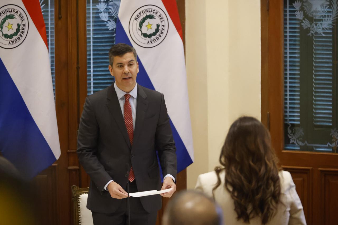 El presidente de la República, Santiago Peña, tomó juramento a la nueva ministra de la Mujer, Alicia Pomata Gunsett, quien es designada por Decreto N° 4783, en reemplazo de Cynthia Figueredo. Tras el acto de juramento desarrollado en el Palacio de Gobierno, la nueva titular de la cartera de la Mujer, hasta ayer coordinadora de la Oficina de la Primera Dama (OPD), brindó una conferencia de prensa.