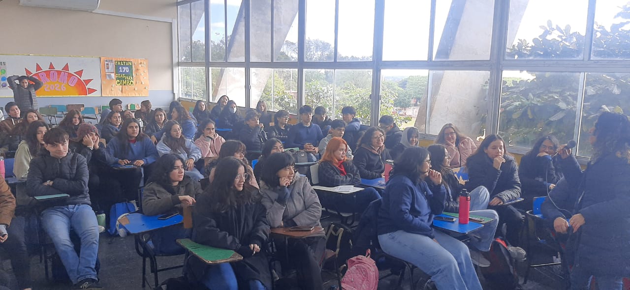 Alumnas y alumnos del tercer curso de la media del Colegio Experimental Paraguay Brasil participaron de la charla sobre “Noviazgo Sin Violencia”, impartida por el Ministerio de la Mujer siguiendo con las acciones para la prevención de la violencia.