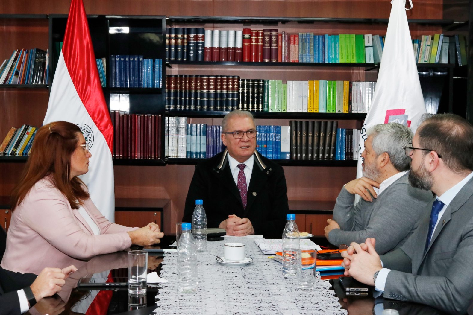 La ministra Cynthia Figueredo participó hoy de la reunión interinstitucional desarrollada en el Ministerio Público, con la presencia del fiscal general de la República, Emiliano Rolón; estuvieron además el ministro del Interior, Enrique Riera; el ministro de la Niñez y la Adolescencia, Walter Gutiérrez; y el ministro de Justicia, Rodrigo Nicora, el punto central de la misma fue reforzar medidas en prevención a la violencia contra la mujer.