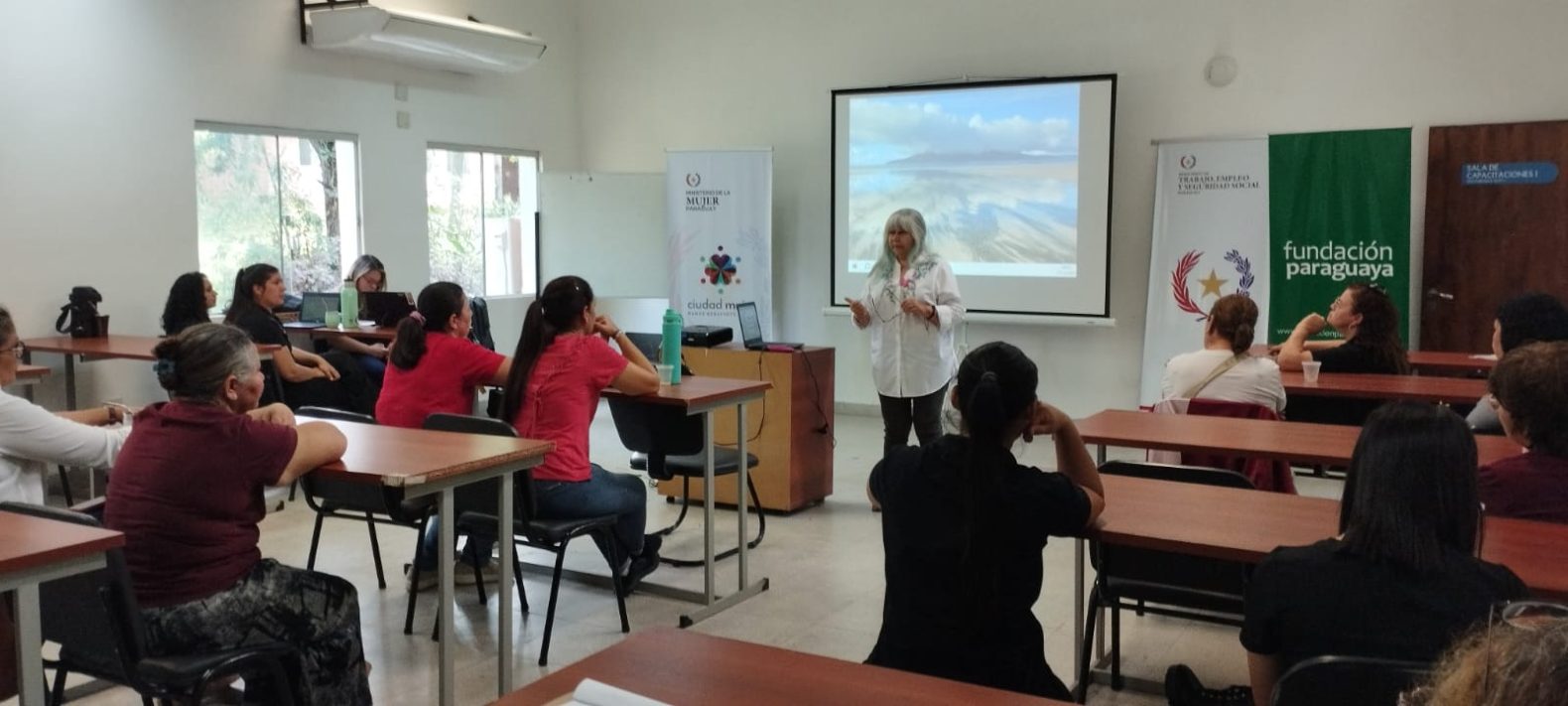 En el Centro Ciudad Mujer “Ñande Kerayvoty Renda” se desarrollaron dos charlas dirigidas a un grupo de 29 emprendedoras, abordando los temas “Presupuesto familiar y personal, ahorro y deudas sanas”, a cargo de expositoras de la Fundación Paraguaya, y “Manejo óptimo de la comunicación”, impartida por la Coordinadora del Módulo de Educación para la Equidad.